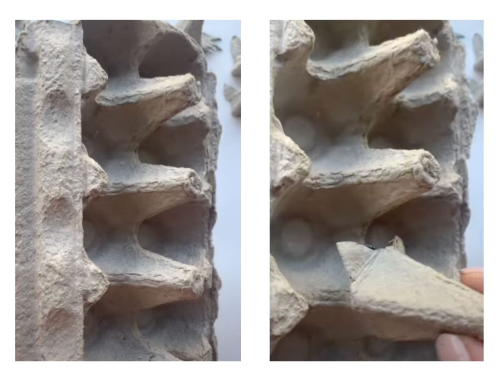 Once you’ve got all the materials ready to go, it’s time to cut the animal heads from the egg cartons.