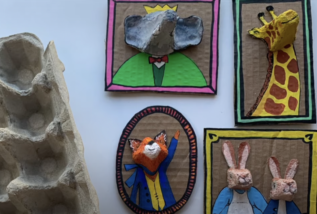 First, let’s make sure you have everything you will need to construct your egg carton animal characters. Gather the following materials: