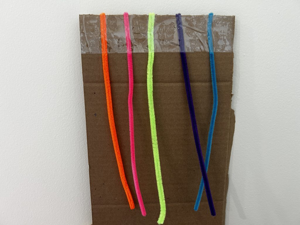 It doesn’t get much easier than this! Simply take 4-5 pipe cleaners and space them evenly apart on the cardboard.
